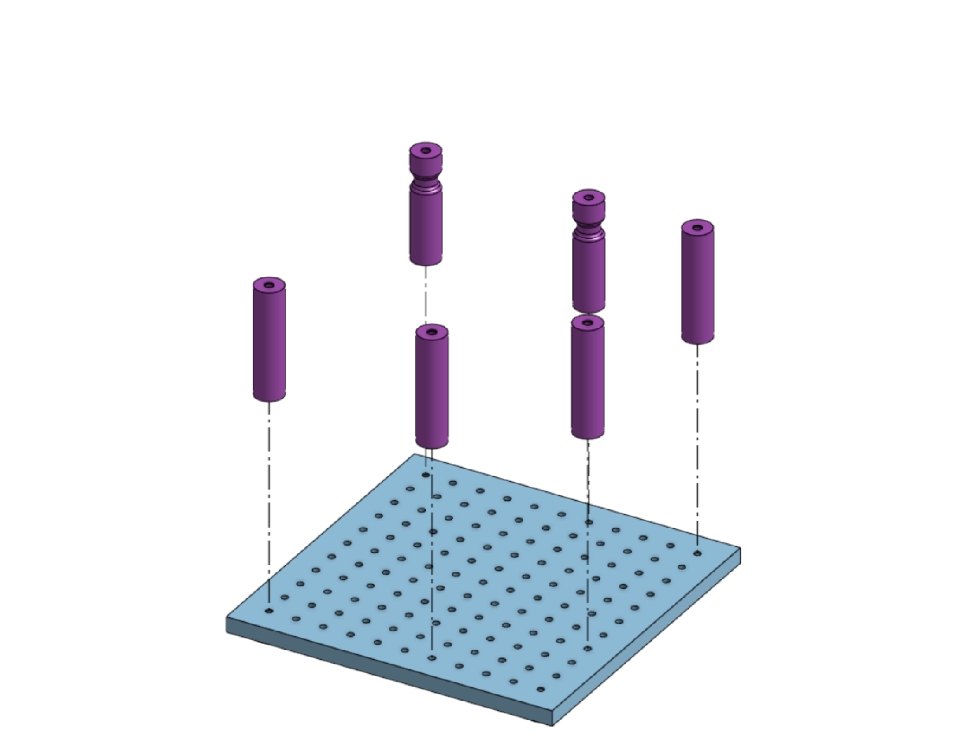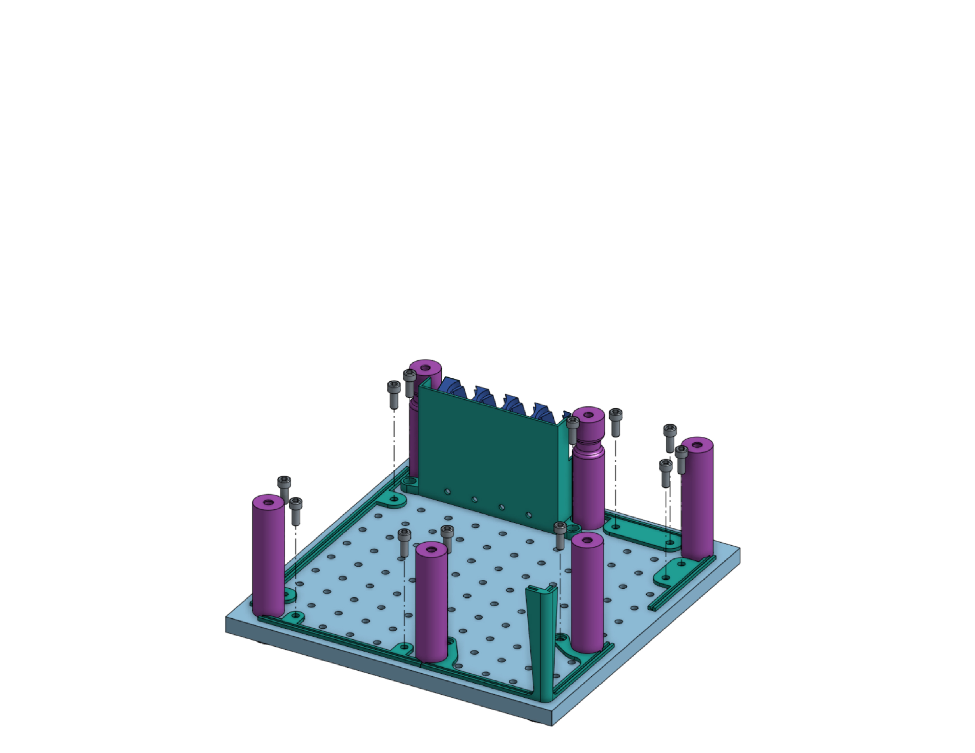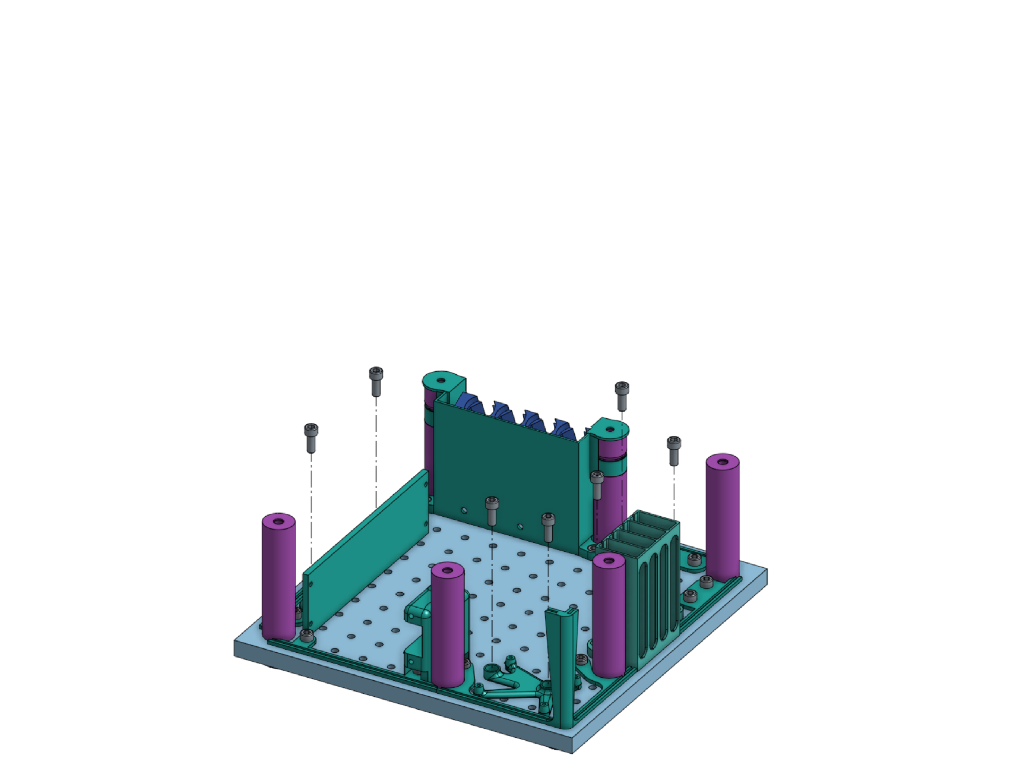 - Get 6 M6 x 16mm inner screws and use them to get the 4 resin-filled legs and the 2 resin-filled thin legs into the 300x300mm breadboard