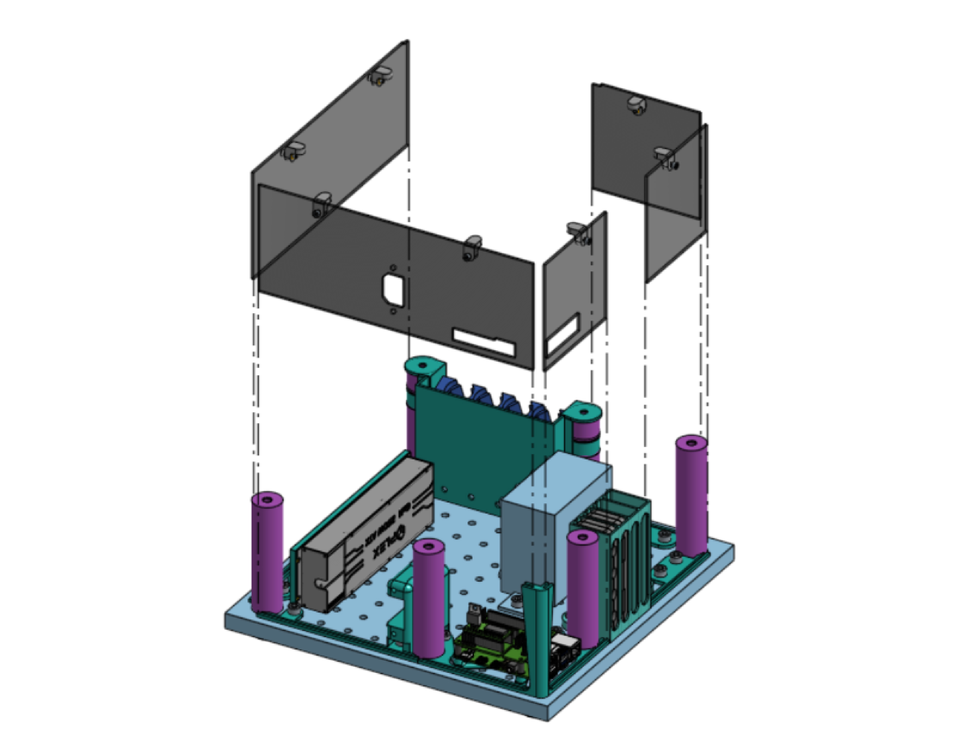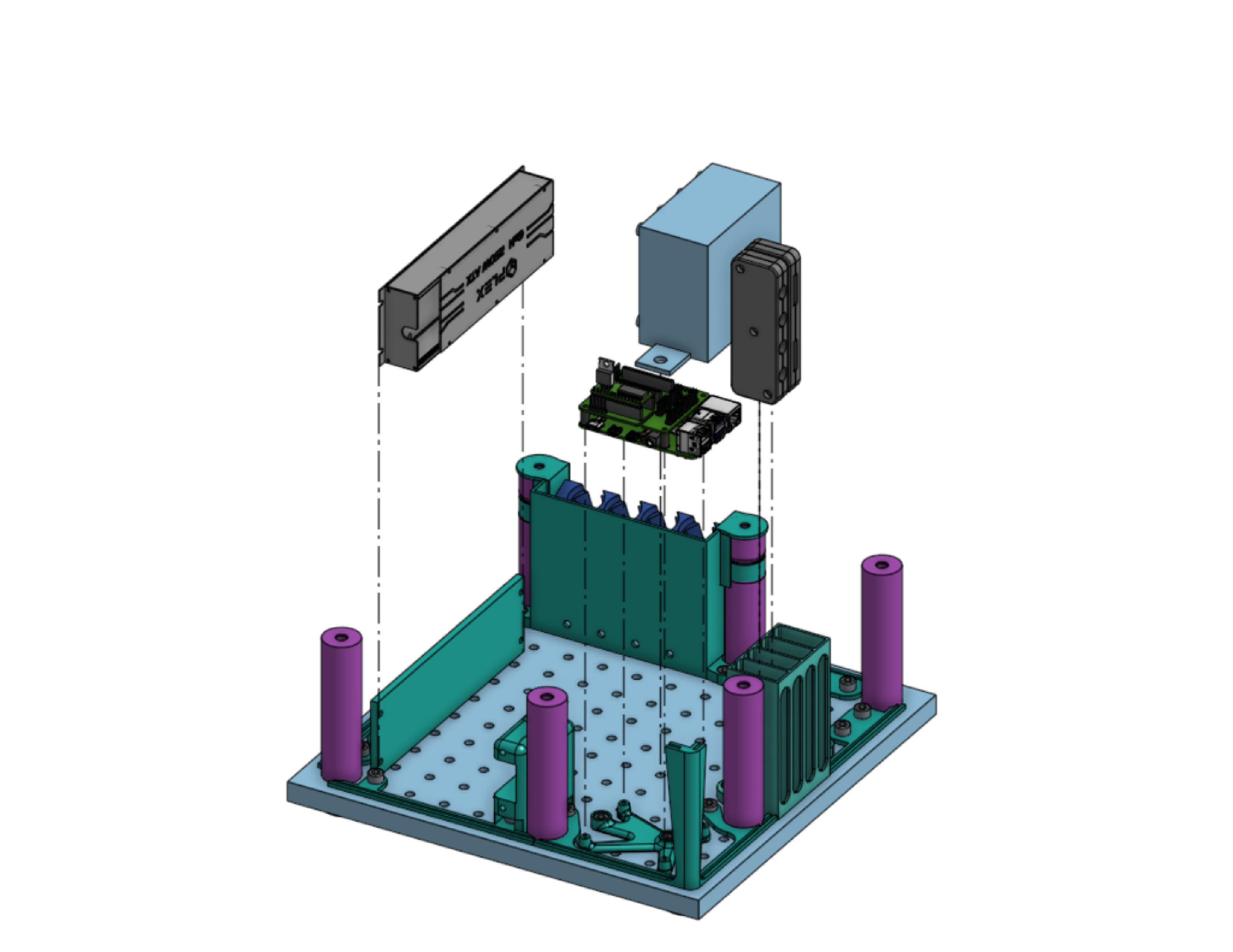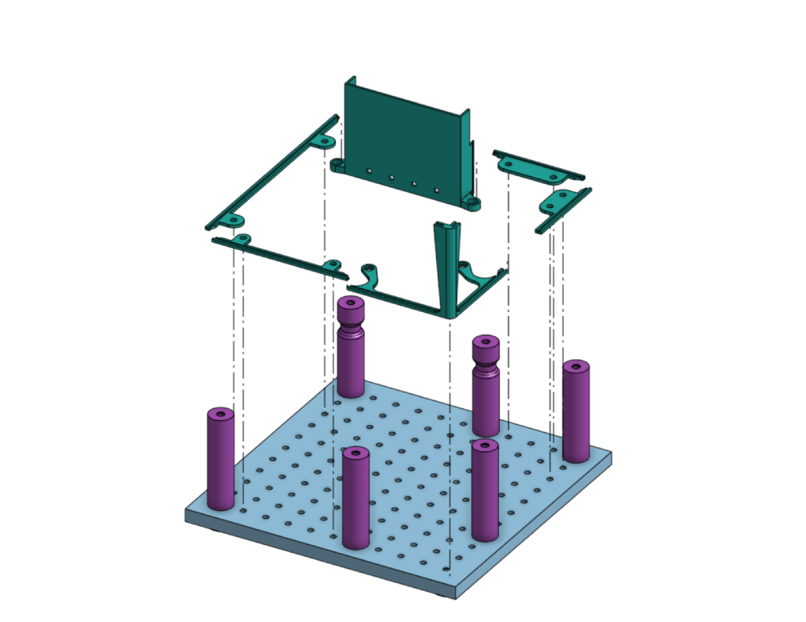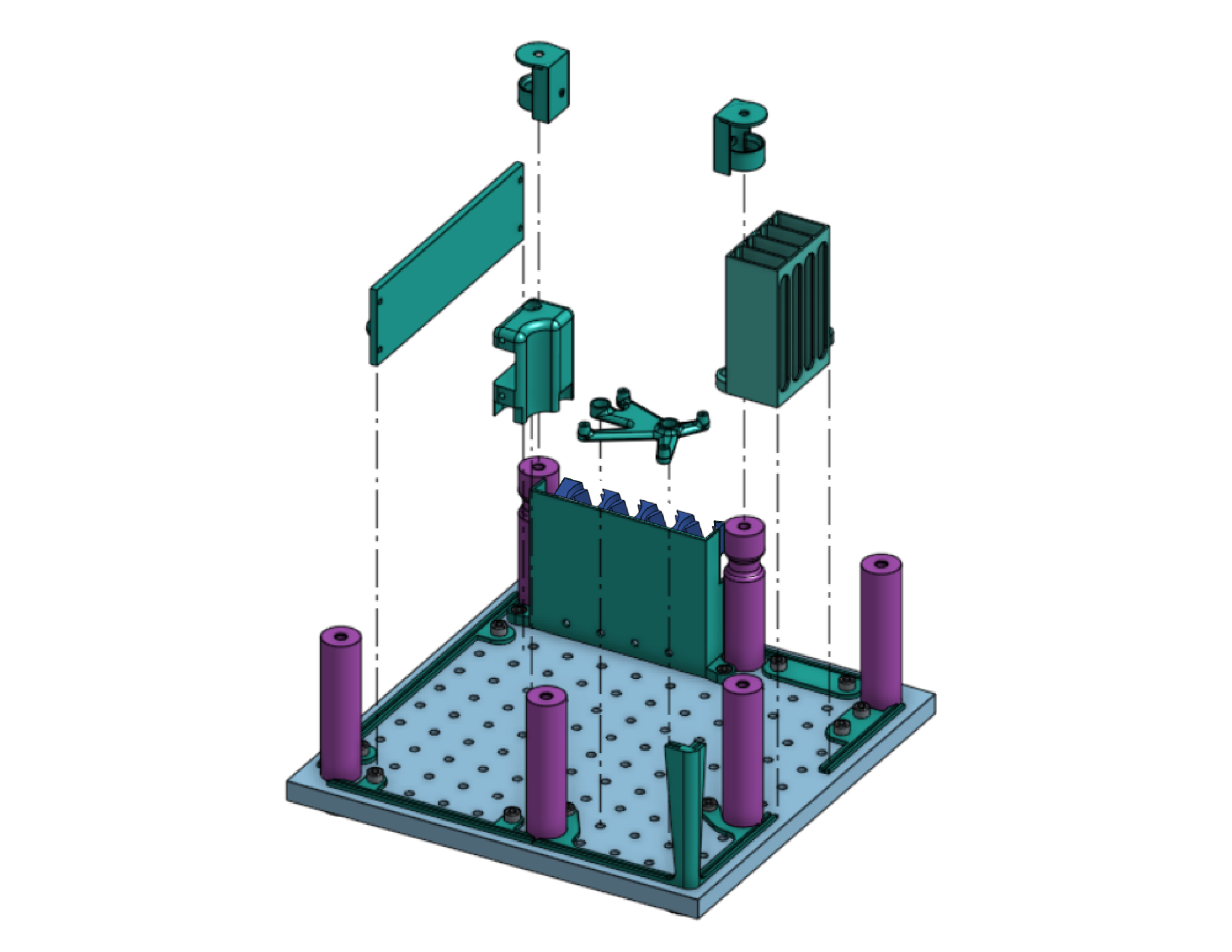 - Get 6 M6 x 16mm inner screws and use them to get the 4 resin-filled legs and the 2 resin-filled thin legs into the 300x300mm breadboard
